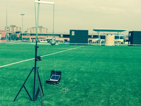 We offer a critical fall height assessment and testing service to EN 1177. The photograph below shows Surface Performance Ltd carrying out an EN 1177 assessment to an artificial 3G rugby pitch in London.